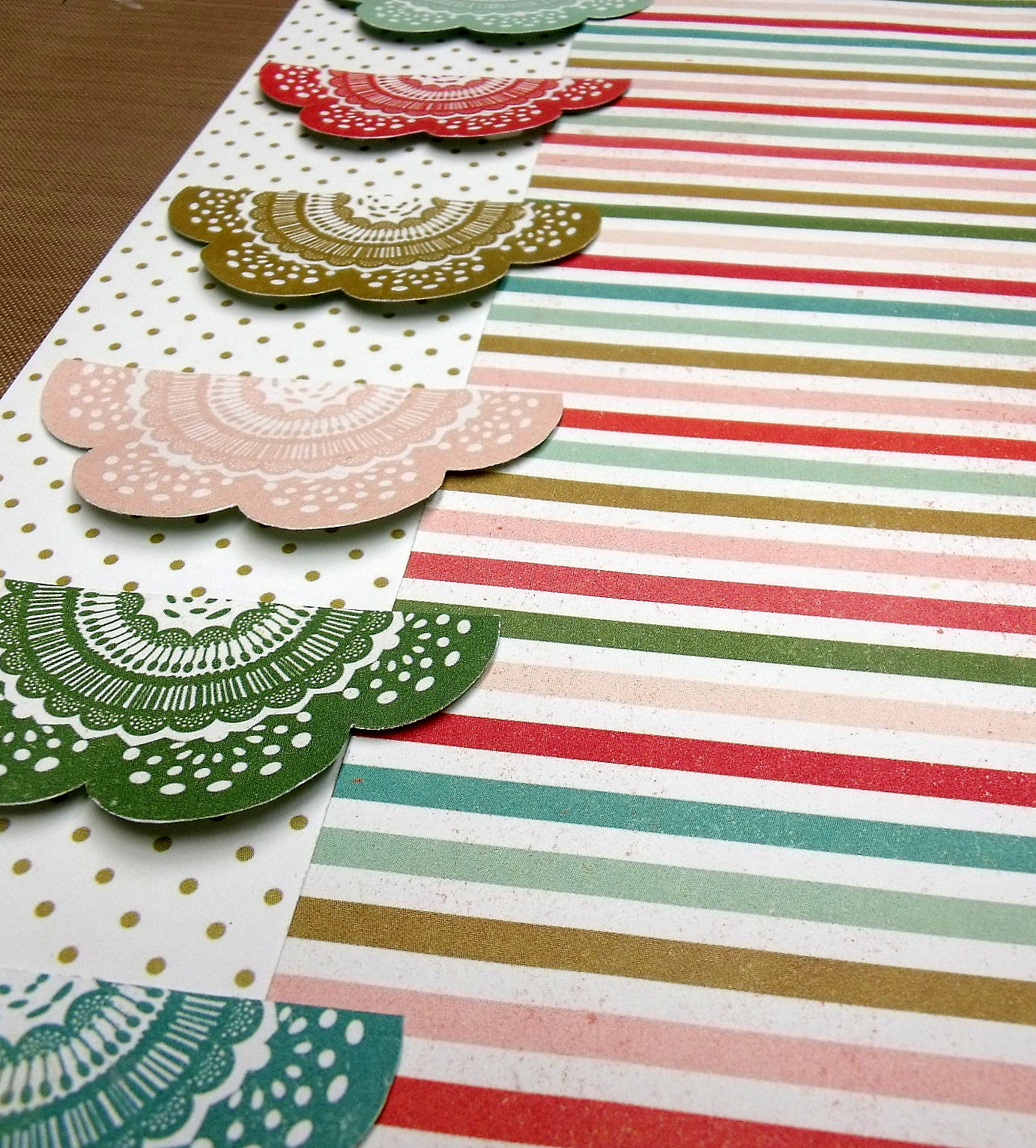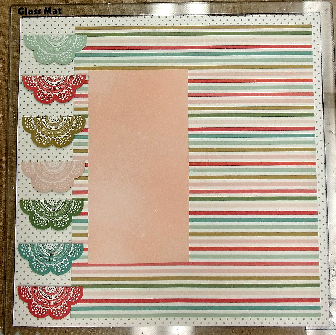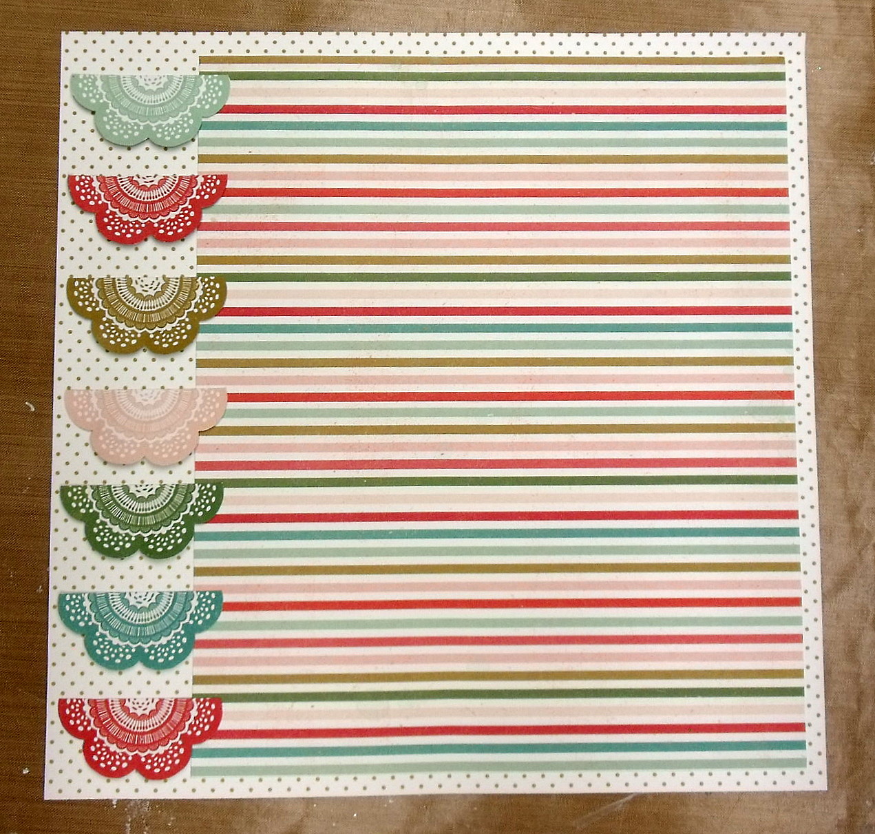 I stuck the doilies along the left edge of my background in a vertical line.