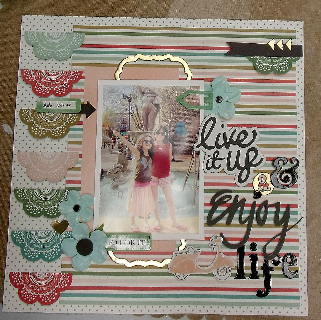 This month I have decided to share with you step-by-step instructions on how I created my 'Live It Up' layout with the Main kit featuring the lovely My Mind's Eye Jubilee Mint Julep collection.