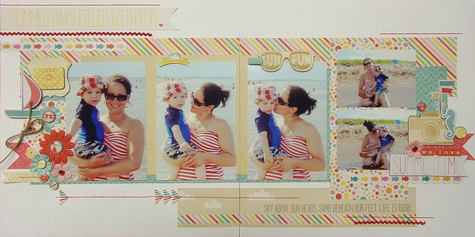 Do you love double-page layouts like me?  When I started scrapbooking back in 2004, I didn't know why someone would want to create single-pages.  I found that the double spread looked so nice in an album and was able to contain multiple photos, which is the whole point of scrapbooking, right?  The photos!