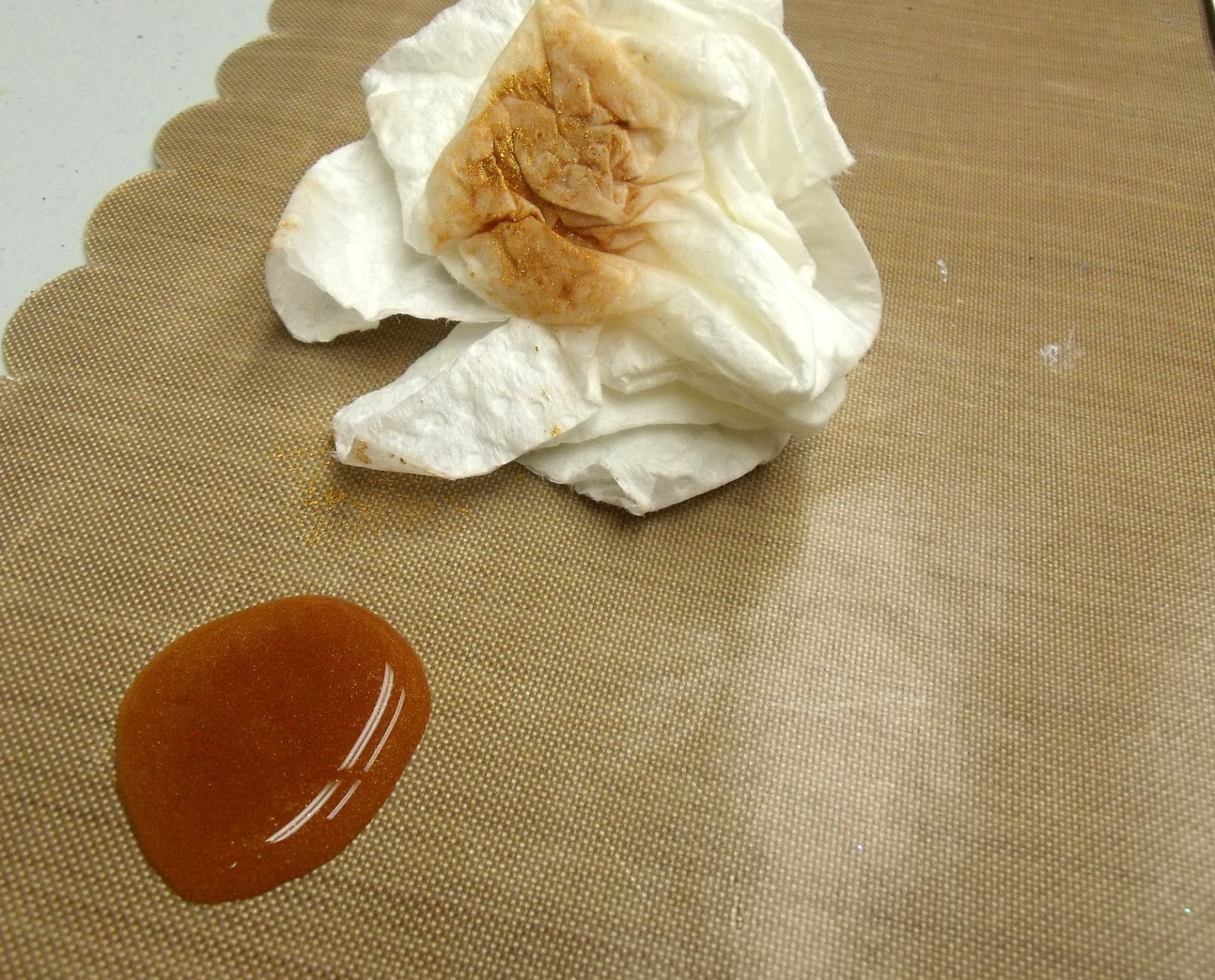 Because this particular powder "sets" chemically rather than with heat, I sprayed it with white (not malted) vinegar that I had poured into a little spare spray bottle. Then, all you have to do is let it set for about 15 minutes.