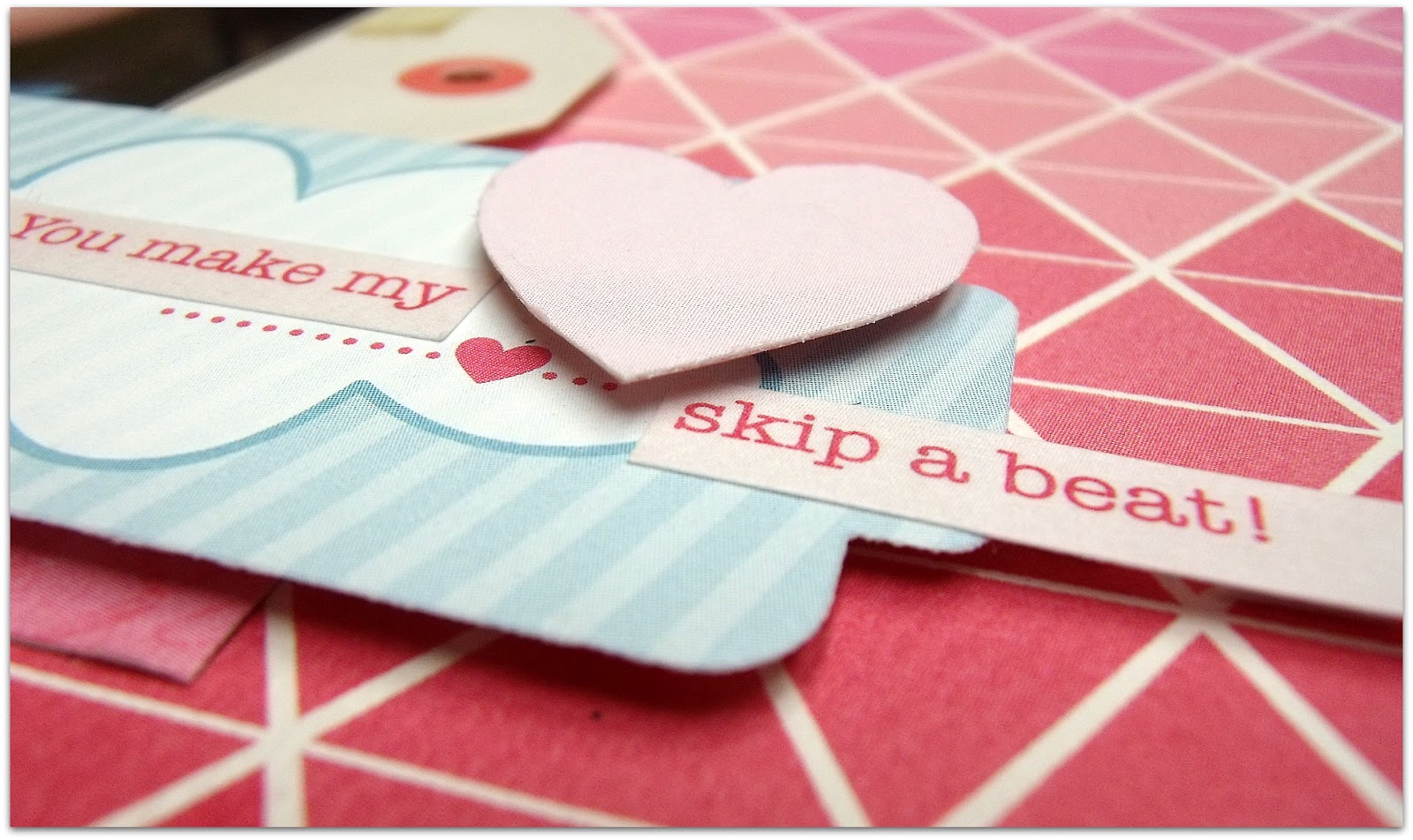 I fell in love with the Album kit this month! It is full of flowers and hearts, so I decided to make a mini album that will have photos of my husband and I! My poor hubby just doesn't make it to many of my scrapbook projects, so this was a fun project to create!