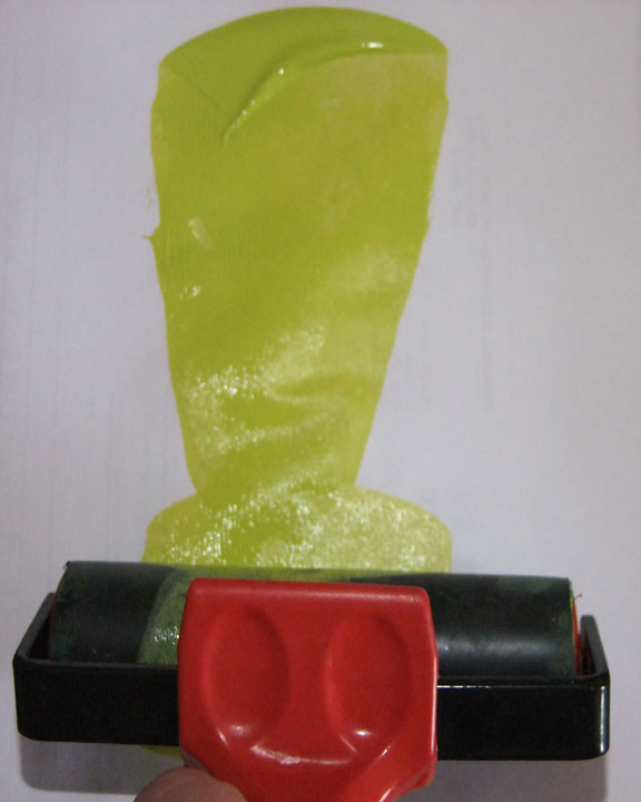 Roll the brayer through the paint just like a paint roller