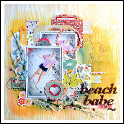 Next I added my title work & some finer details such as the confetti dots (using full-stops from the alphabet set) & some cheesecloth (which always works well with beach-themed layouts).