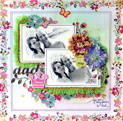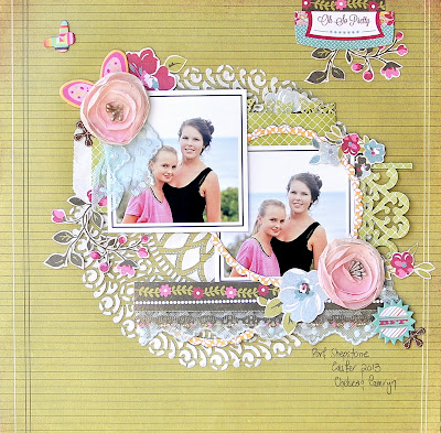 Lastly I added some more embellishments (printed chipboard) & some floral vines (to mimic the main embellishment area on the sketch).