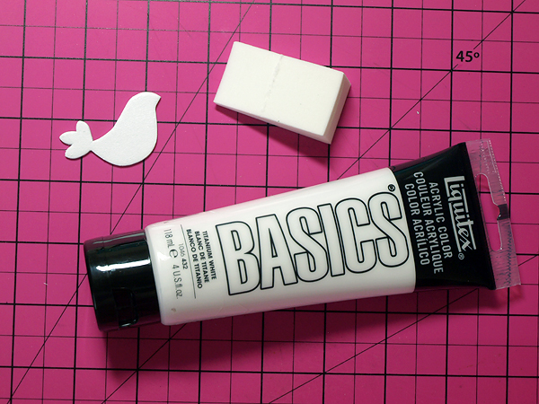First I applied a couple of coats of white acrylic paint to the chipboard shape using a makeup sponge.