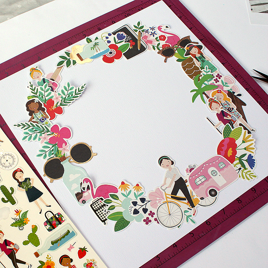 I continued my way around the circle, at first only using the die-cuts, but as I neared completion of the circle I also added in some of the fun stickers:
