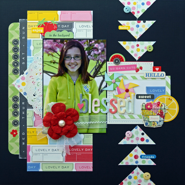 I would define my scrapping style as romantic with a touch of shabby chic, though I love to change it up from time to time and play around with different scrapping styles. My work has been published in various magazines, and I’ve been on the