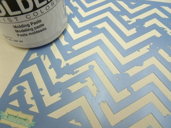 Using an art spatula, i put a generous coat of molding paste onto the
