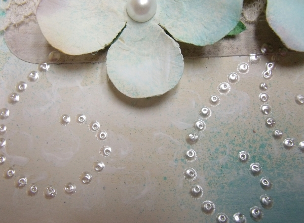 Following the pattern, i covered each hole with a drop of liquid pearl.