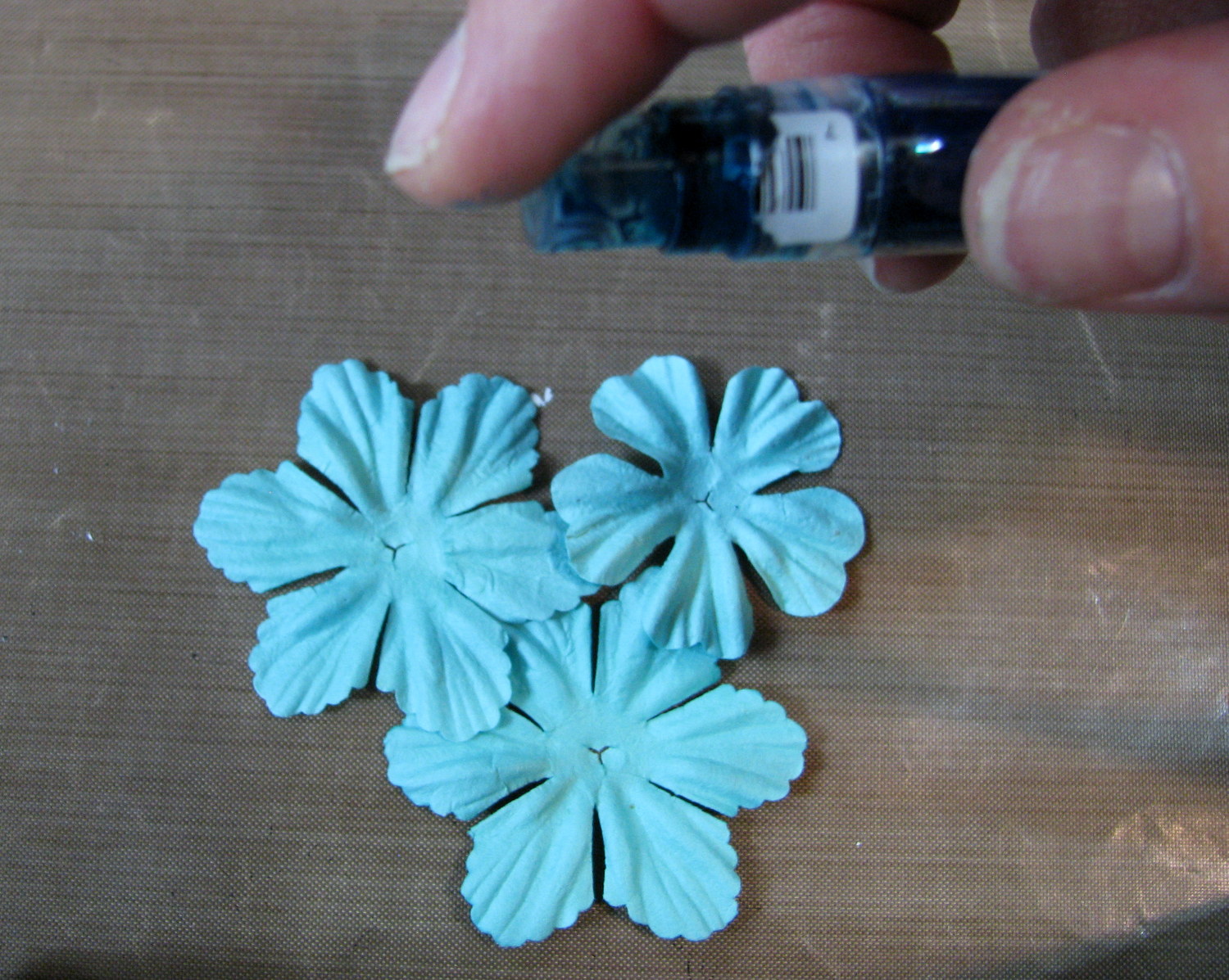 5. I spritzed the flowers with mist....I used Turquoise Smooch.