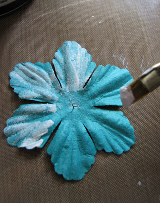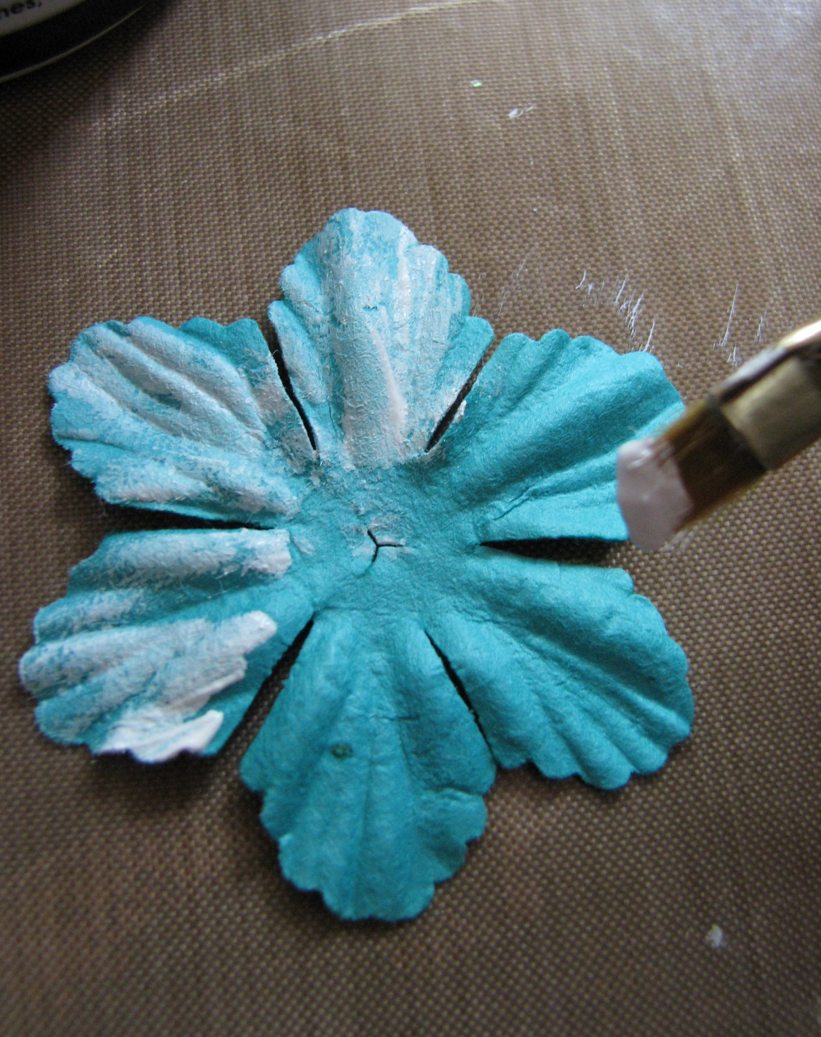 1. I dry brushed the petals with gesso for lighter, distressed flower.