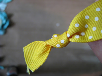 Staggering the petals, I glued two large flowers, and a small flower together. I glued the knot on for the flower center.