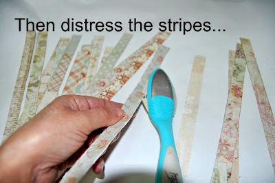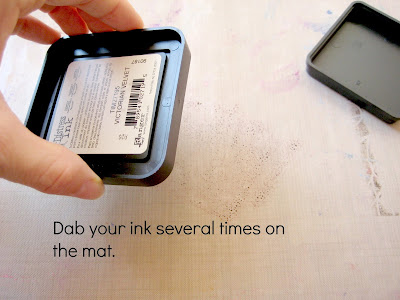 Once dry, I brushed Vintage Photo Distress ink to the edges using a dauber. When wet, the ink will bleed, contributing to the aged, distressed look I am hoping to achieve.