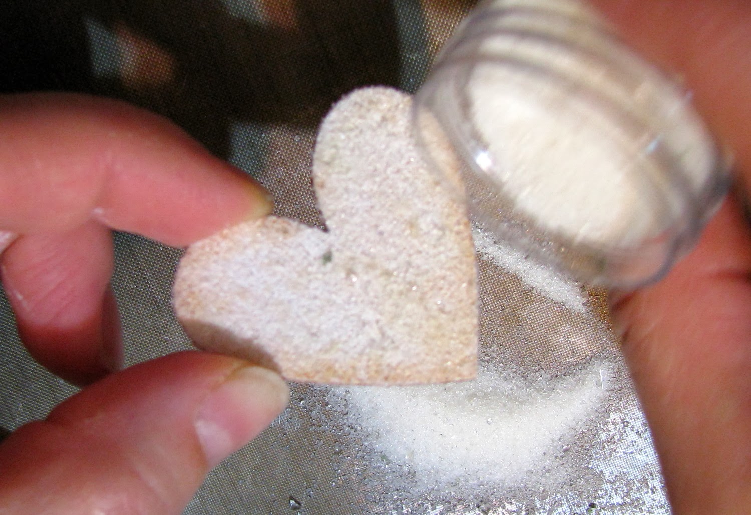 Next, I applied regular embossing ink directly to the wood, and then a generous coat of UTEE Embossing powder. (Ultra Thick Embossing Enamel)