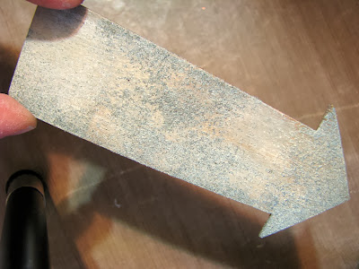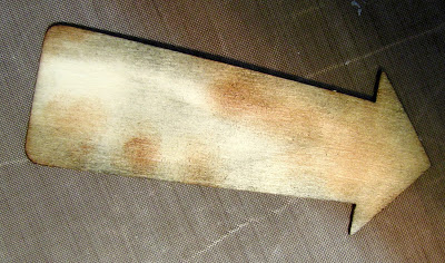 Lastly, I chose an arrow. I started by adding gray and Vintage Photo Distress Ink around the edges and filling in sporadically. By using Distress Ink, the inks will bleed when wet, adding to the distressed look.