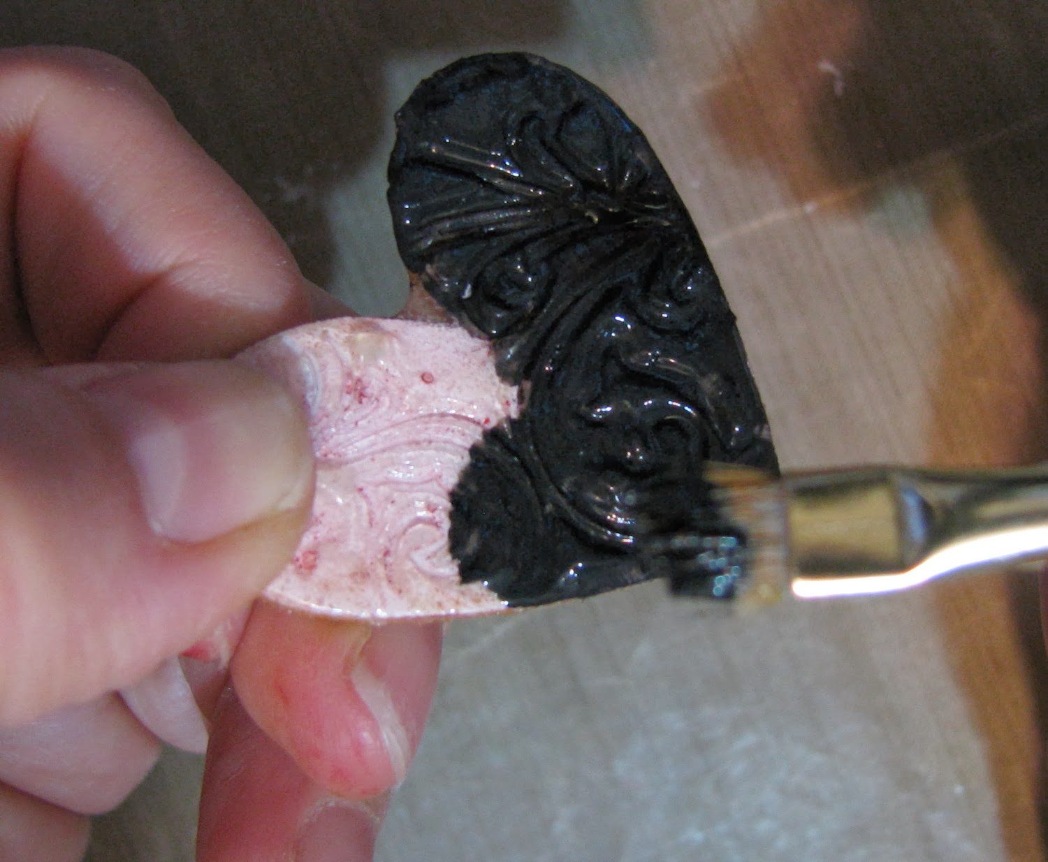 To distress my image, I covered it entirely with black paint, making sure to get into all the crevices.
