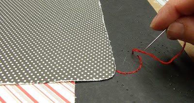 I used a floss threader (used by people who have braces to floss) and threaded the ribbon thru the holes.